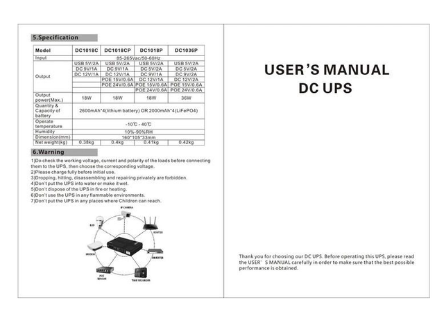 Міні UPS DC1018P 10400мАч – це універсальний пристрій, створений для забезпечення безперебійного живлення ваших WiFi роутерів, IP камер та інших пристроїв, що працюють від напруги 12В, 9В або 5В. Завдяки своїй великій ємності та широкому діапазону вихідної напруги, цей міні UPS стане незамінним помічником як в домашніх умовах, так і в офісі.