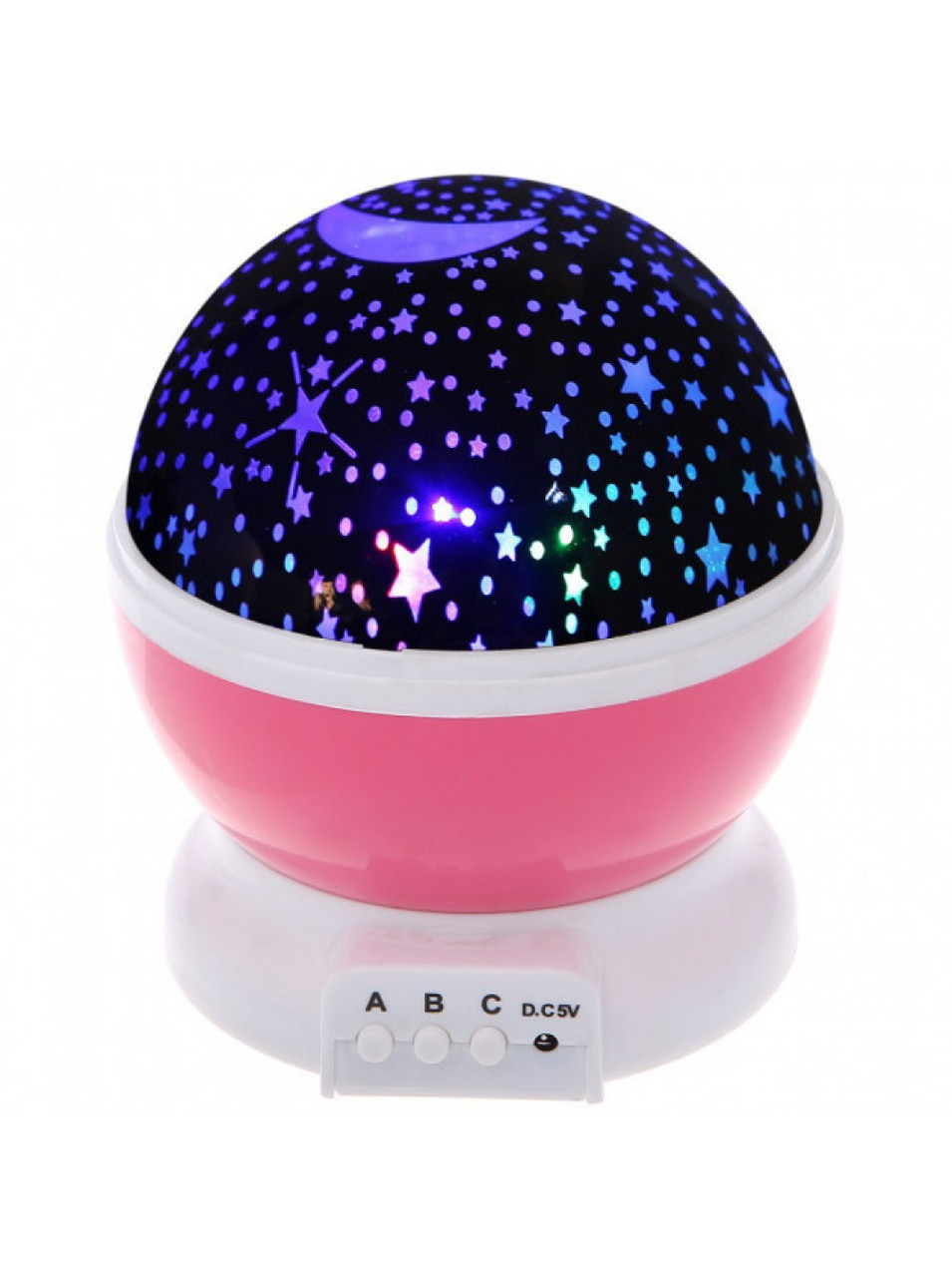 Круглий обертовий нічник Star Master проєктор зоряного неба кольору рожевий фіолетовий блакитний у подарунковому пакованні САМОВИ НЕТ Живлення світильника можливе від usb дроту або від чотирьох батарейок типу ААА. Комплектується напівпрозорим матовим ковпаком, який дає змогу створити більш приглушене затишне світіння. Нічник має три кнопки керування, які відповідають трьом режимам роботи (їх можна поєднувати в будь-якій комбінації):